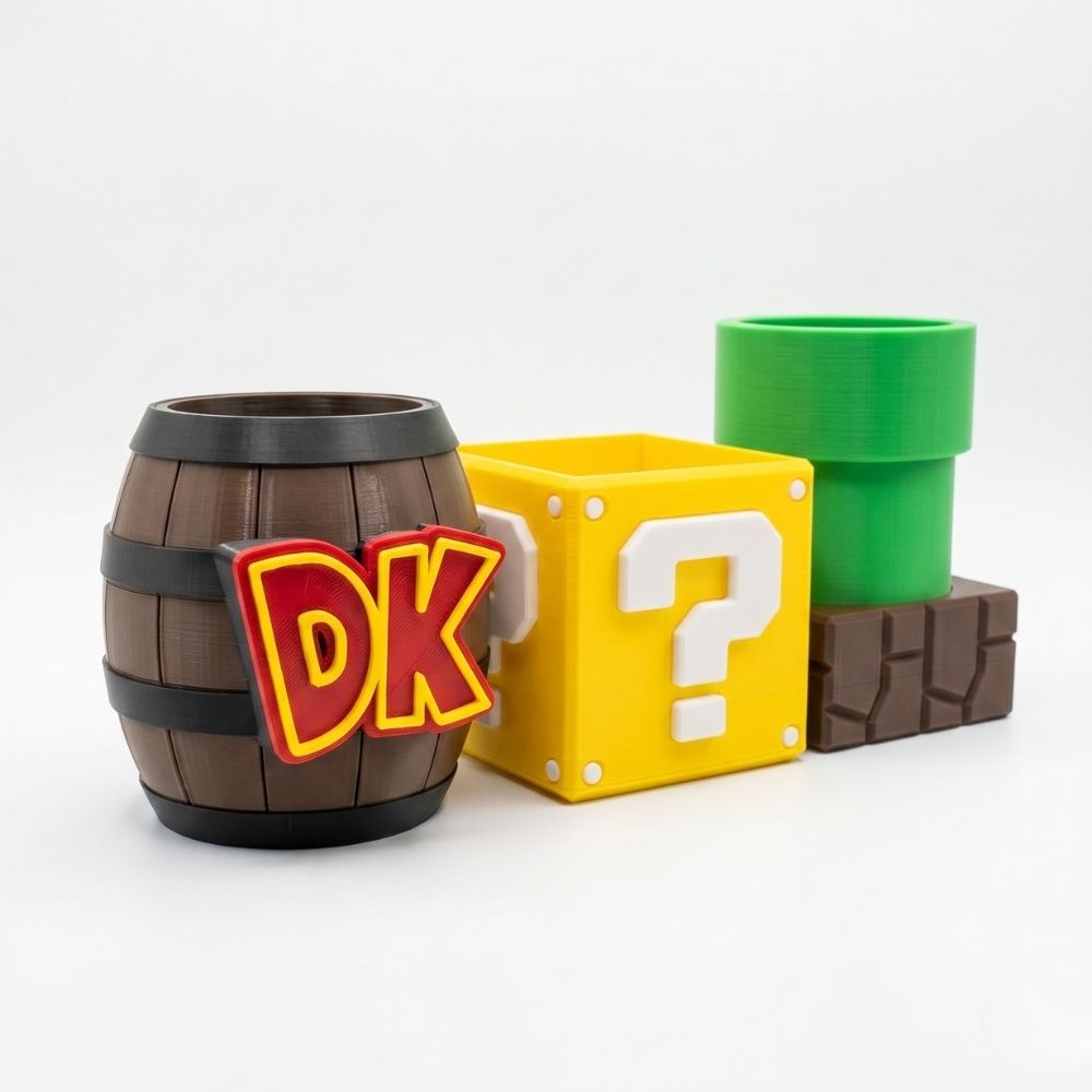 Organizador de Mesa Gamer Geek Compatível Nintendo - Porta Lápis e Objetos Mario e Donkey Kong